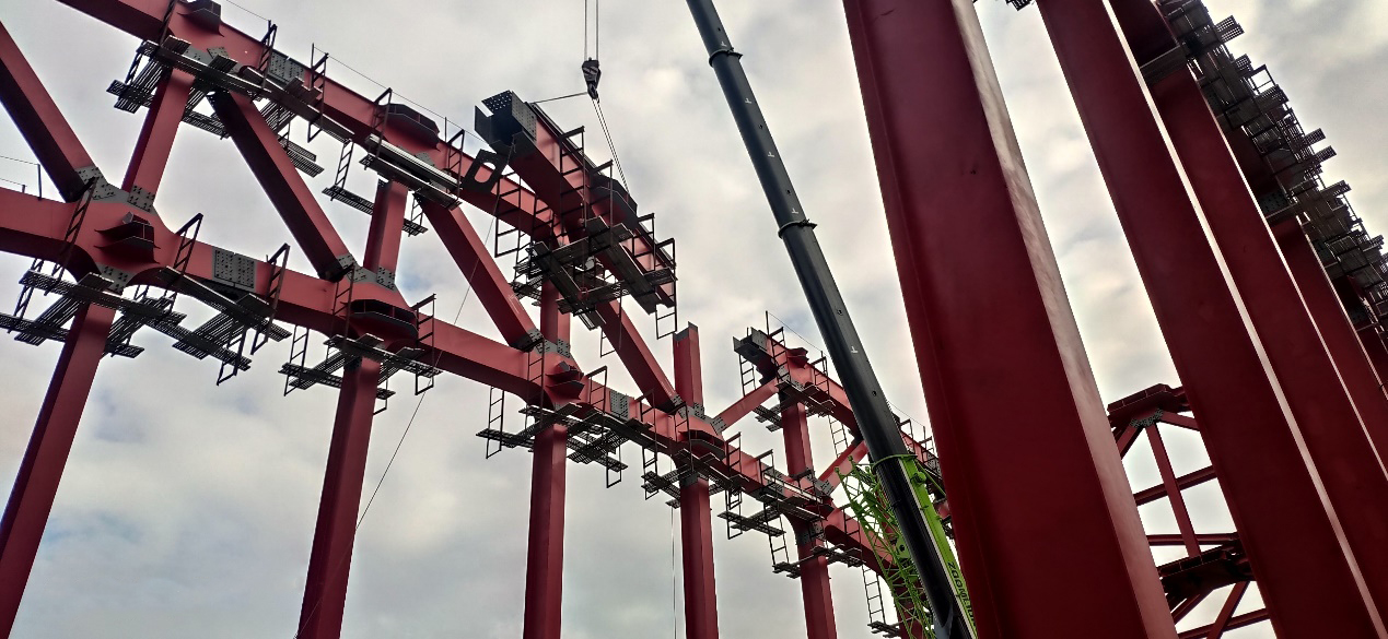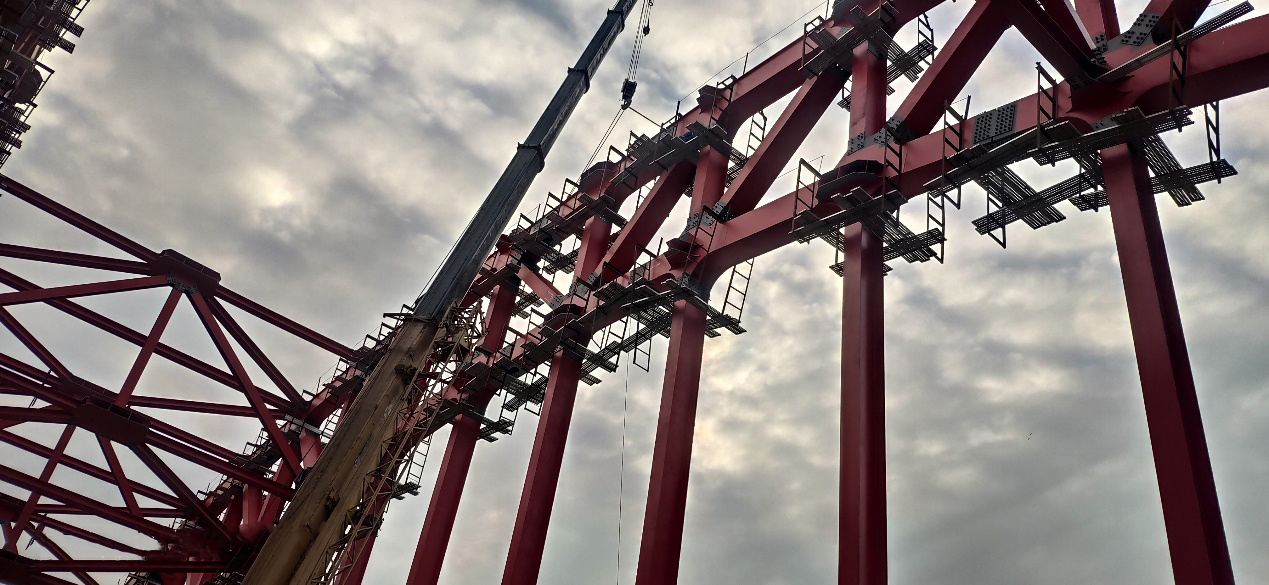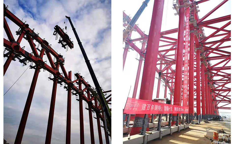 ? ? ? ?上午10時許,伴隨著起吊信號指令的發(fā)出,主拱合龍弦桿順勢吊起,在各方單位領(lǐng)導(dǎo)的共同見證下,歷時1個多小時的主拱合龍段的安裝工作順利完成,標(biāo)志著合肥集賢路跨派河橋主拱正式合龍。合肥市重點工程建設(shè)管理局相關(guān)領(lǐng)導(dǎo)、安徽省公路橋梁工程有限公司集賢路項目部相關(guān)領(lǐng)導(dǎo)、安徽省公路工程建設(shè)監(jiān)理有限責(zé)任公司相關(guān)領(lǐng)導(dǎo)及海波重科合肥集賢路項目部全體人員等共同見證了集賢路跨派河橋成功合龍。