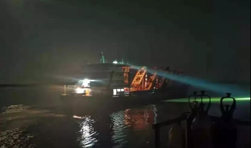 據(jù)悉,同年8月30日,四個(gè)高度為13米鋼管拱節(jié)段的鴻源7號運(yùn)輸船從海波重科漢南碼頭沿長江、岷江航道抵達(dá)四川省樂山市犍為縣。此次航運(yùn)全程1751公里,歷時(shí)12天到達(dá)犍為岷江特大橋橋址,這也為接下來的主橋鋼管拱的吊裝、結(jié)構(gòu)裝焊、施工平臺搭設(shè)等工作打開了良好開端。