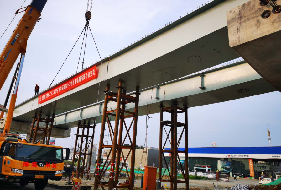 (海波重科新聞報道)2020年7月7日,由海波重科承建的濟寧西外環(huán)十二標段鋼箱梁項目首吊成功,這也標志著濟寧市預(yù)計年底建成通車的目標又邁向了一大步。