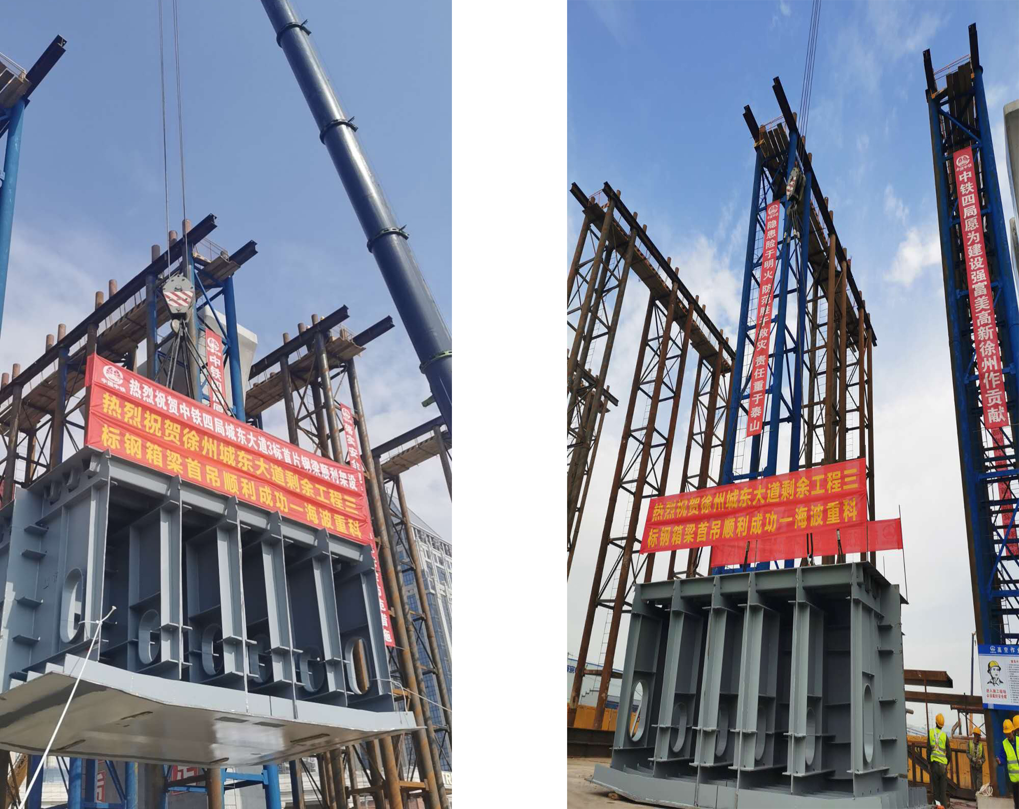 (海波重科新聞報道)2020年10月26日上午,徐州城東大道項目現(xiàn)場,伴隨著現(xiàn)場數(shù)百人的目光,首片鋼箱梁準確無誤的落在預(yù)定架設(shè)點,這一刻標志著徐州城東大道剩余工程3標向著全面完工順利通車又前進了一大步!
