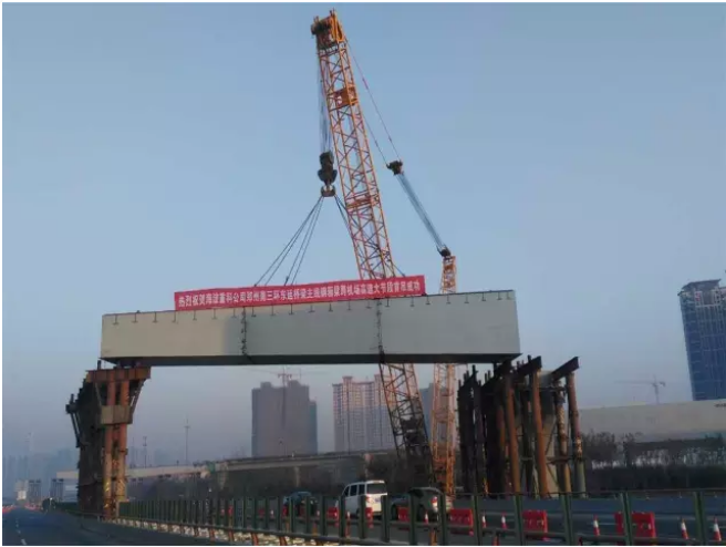 ? ? ? 昨晚,鄭州南三環(huán)二標(biāo)跨機場高速主線橋鋼箱梁首節(jié)段歷時6小時順利吊裝就位,首吊節(jié)段長度32米,重量123噸,梁高3.8米,上跨機場高速,下穿高壓線吊裝,創(chuàng)下鄭州單節(jié)吊裝重量最大,長度最長,難度最高的鋼箱梁吊裝記錄,預(yù)計2016年12月31日可完成全橋鋼箱梁的安裝工作。